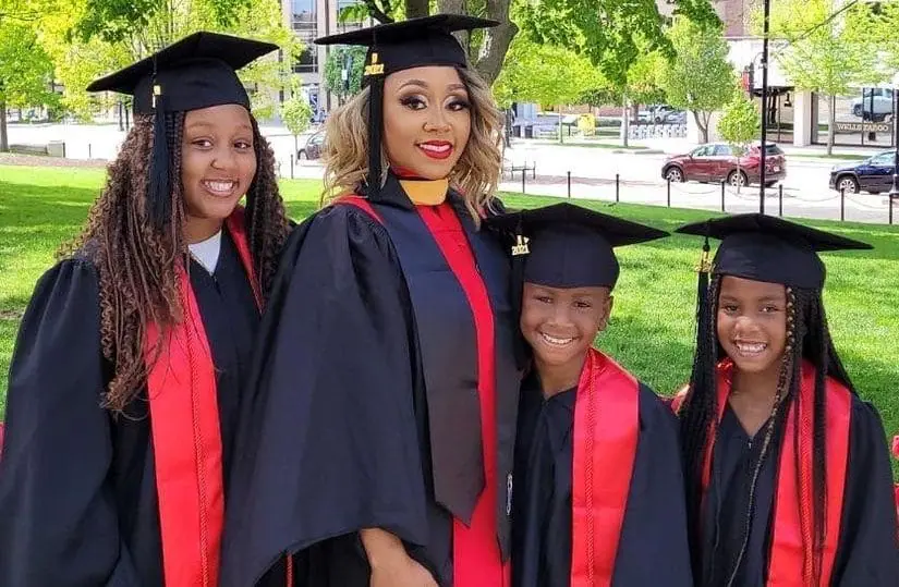 Photo above: Dominique Christian, second from left, is an Odyssey Class of 2009 graduate who earned her master’s degree in social work (MSW) in May 2021 from UW–Madison. Her children, pictured with her in matching graduation caps and gowns to celebrate their mom’s accomplishment, participated in Odyssey Junior.
